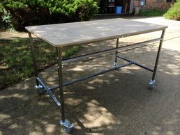 1.5" Steel powder coated frame topped off with reclaimed pine from Texas